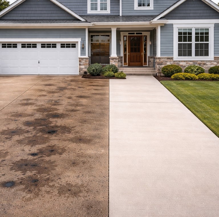 We restore driveways, sidewalks, and patios by removing stains, dirt, and grime—leaving surfaces clean, bright, and uniform.